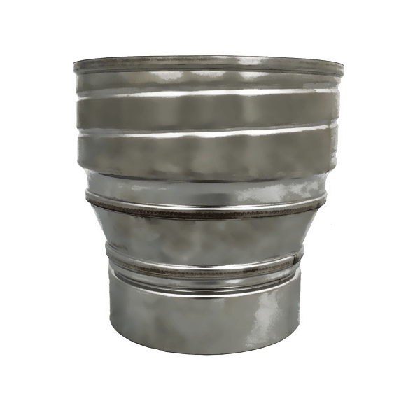 The Screw Fix Increaser to Chimney Liner connects single wall stove pipe to a Flexible Flue Liner where the flexible flue liner is 1 inch greater in diameter than the single wall pipe. This 316 grade steel adaptor has a threaded metal connector allowing it to screw onto the flexible chimney liner. The 45mm tail single wall end connects to your vitreous stove pipe. So easy to install, no fire cement, no self tapping screws to secure it, just an easy thread that screws directly onto the liner to provide a secure and tight fit.